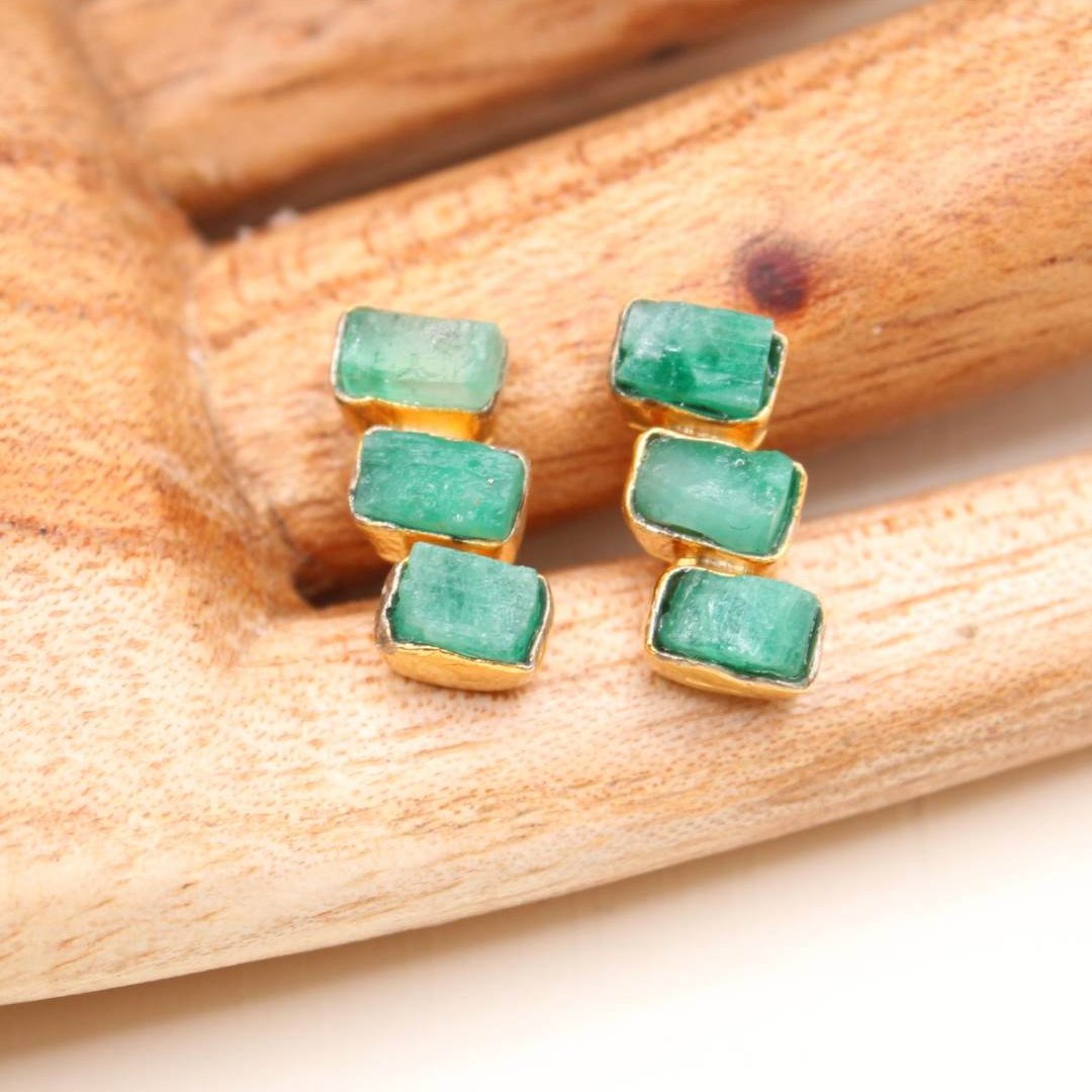 24K Gold Plated over brass and Raw Emerald