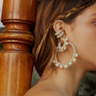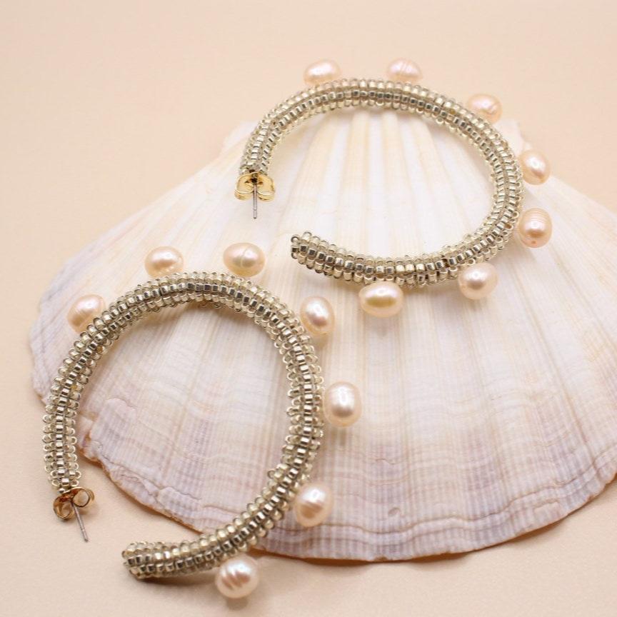 A whimsical take on the classic hoop, these silver-beaded hoops feature freshwater pearls drops set.