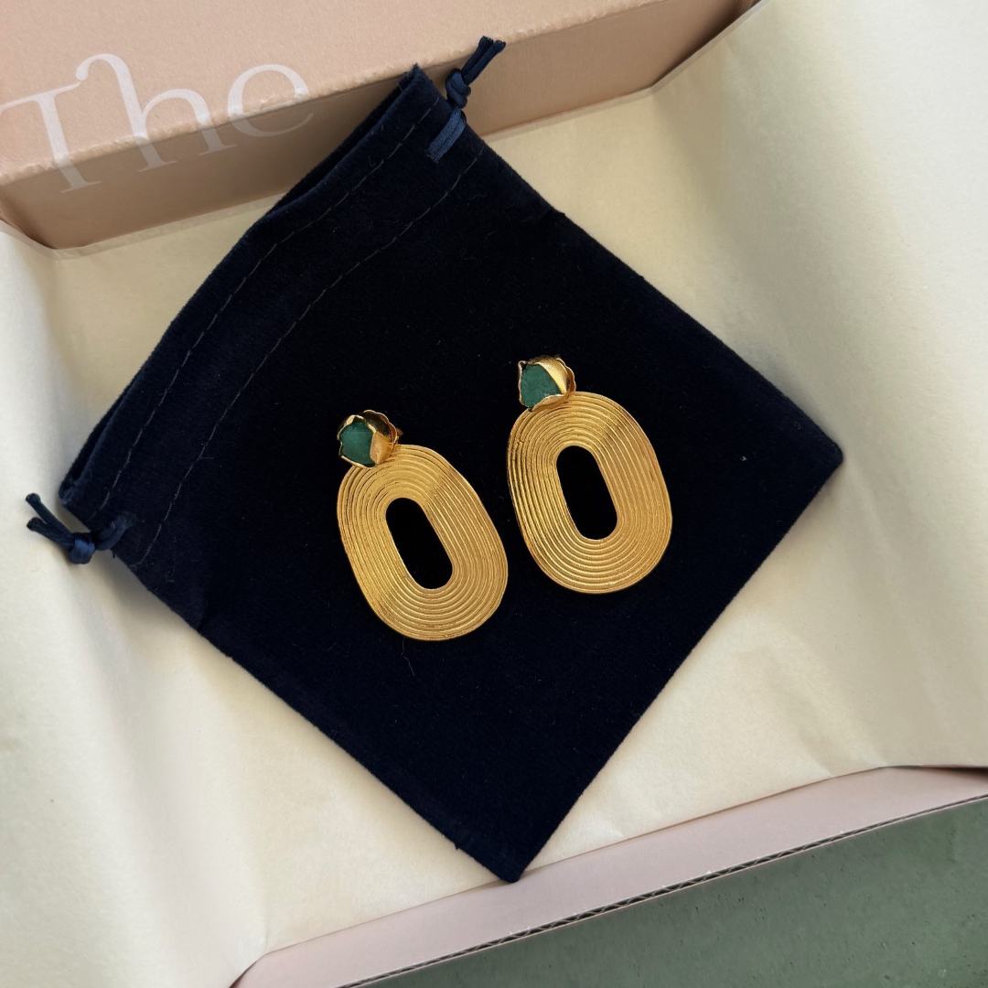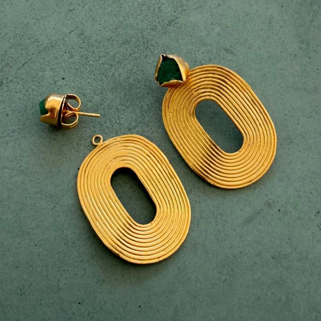24K GOLD PLATED OVER BRONZE and RAW EMERALDS