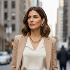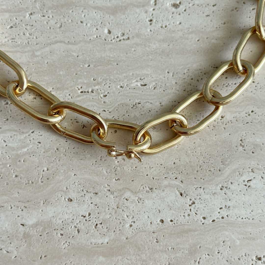 he Liberte Chunky Necklace is a stunning fusion of luxury and crafted art, destined to be the centerpiece of your outfit. This remarkable accessory features a golden-plated chunky chain with a link meticulously lined with delicas. Its bold and intricate design ensures that all eyes will be on you, making a statement of opulence and style. Elevate your ensemble with the Liberte Chunky Necklace, a true embodiment of refined craftsmanship and luxurious elegance.