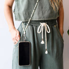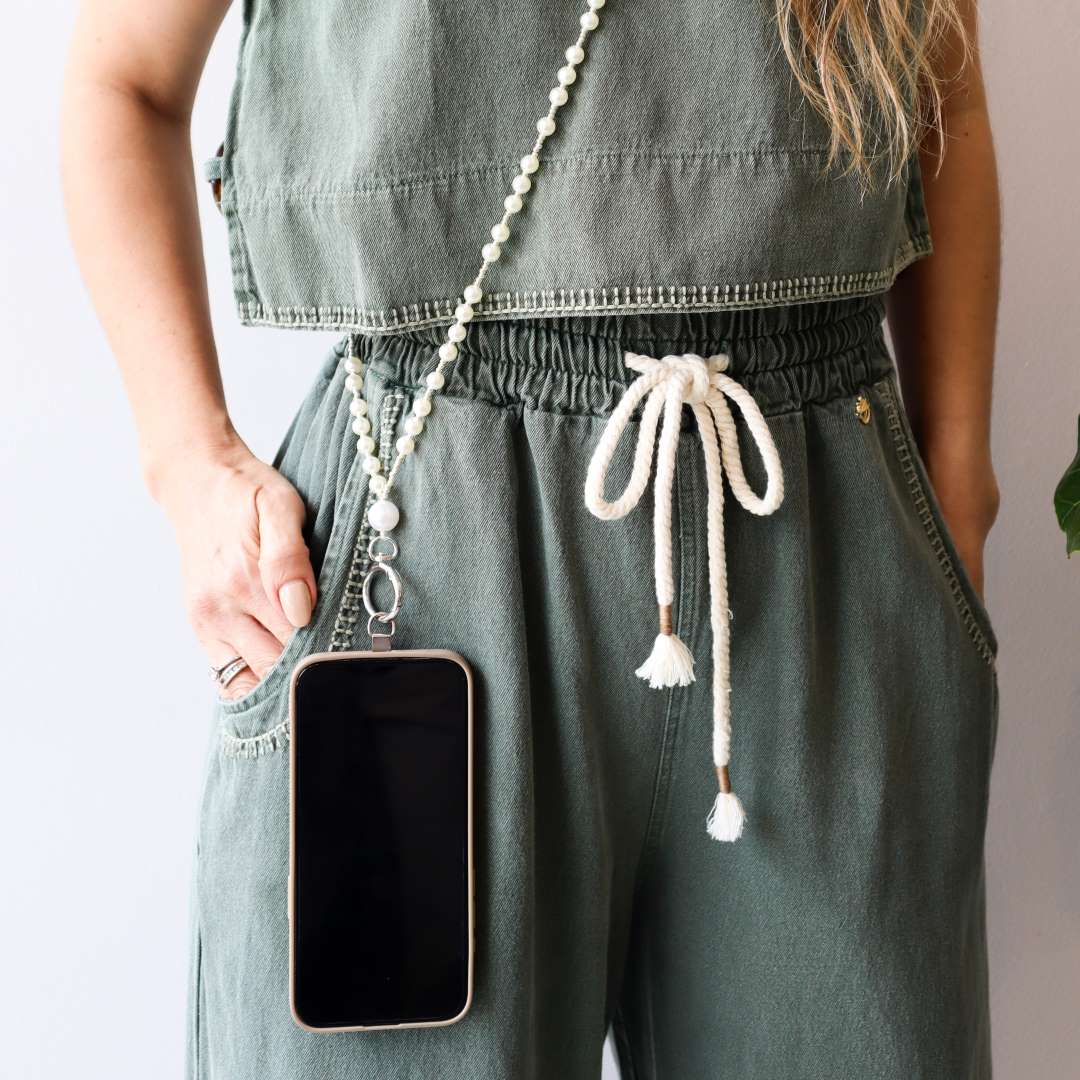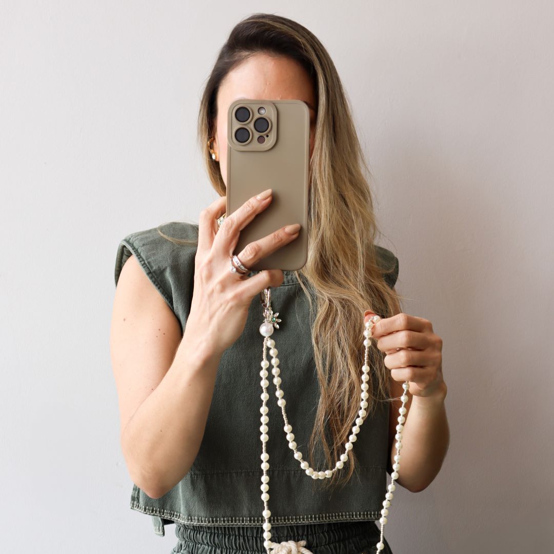 Elegance and functionality are combined in this cell phone strap. With a design that stands out for its pearls and glass beads in silver tones, it is perfect to protect your device with style. Its subtle and sophisticated shine makes it an ideal accessory to complement your looks while comfortably carrying your cell phone wherever you go.