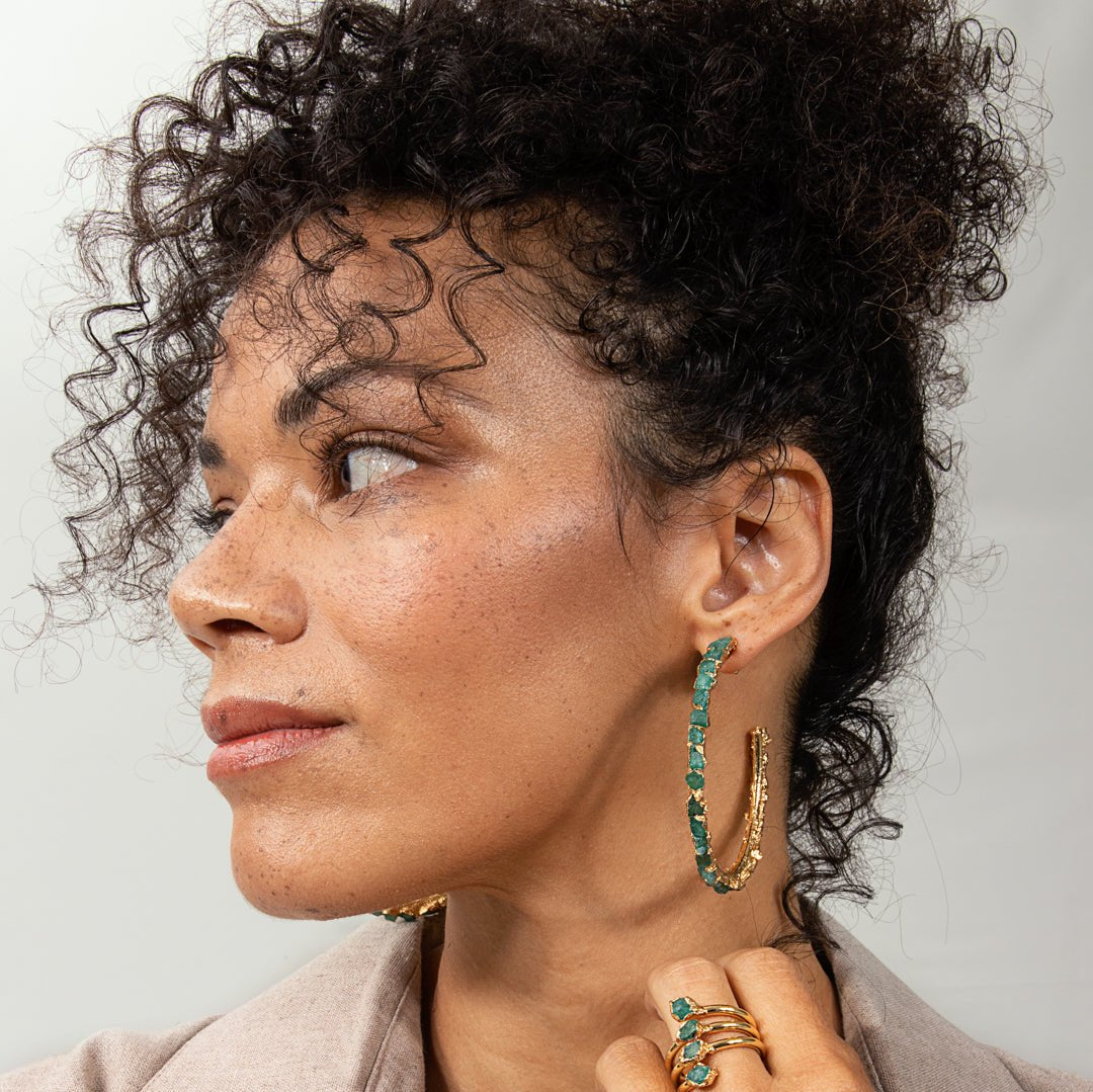 MAYA FRONT EMERALD HOOPS