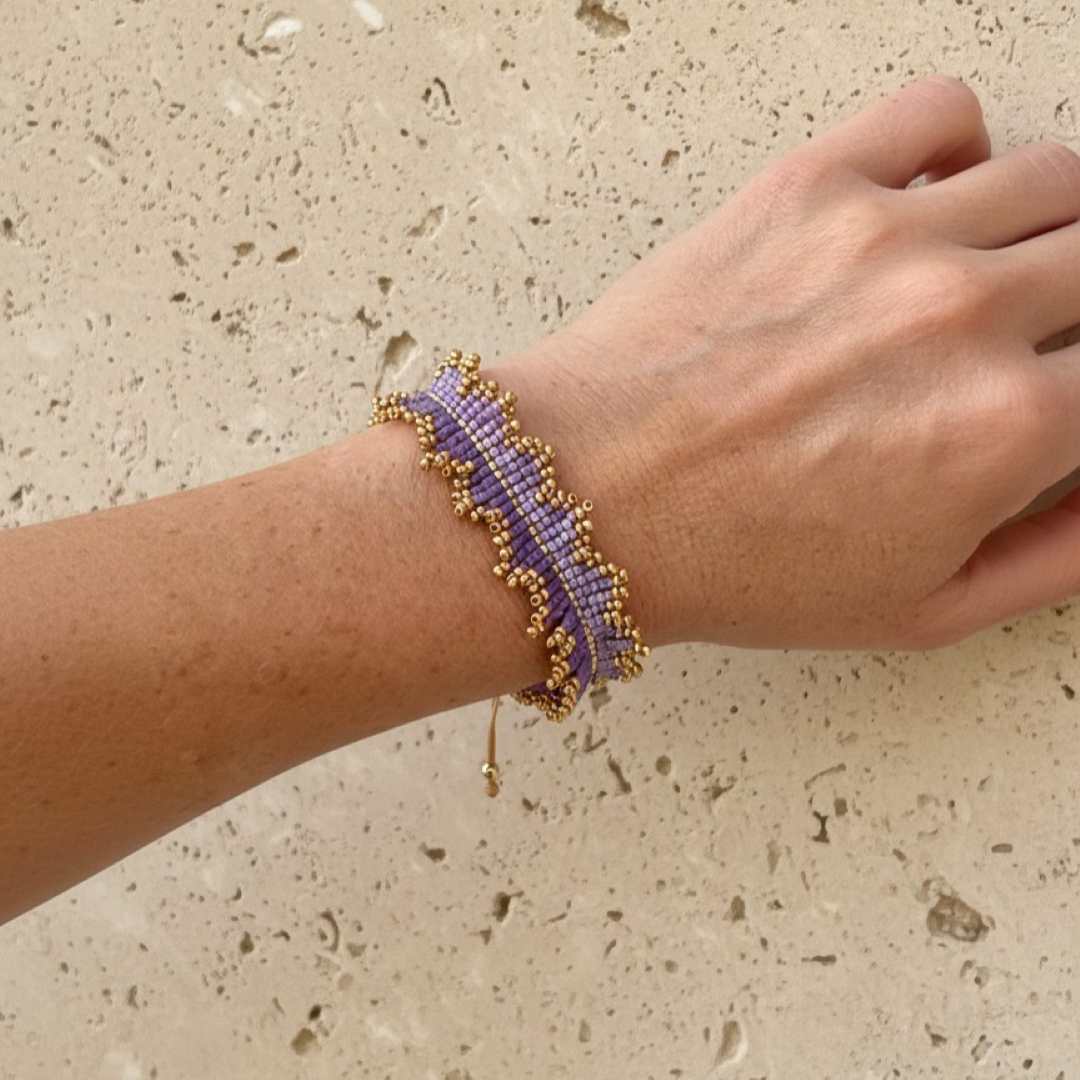 Hecho a mano con cuentas Miyuki. Una pieza ligera y colorida que se adapta a tu muñeca con un estilo natural.