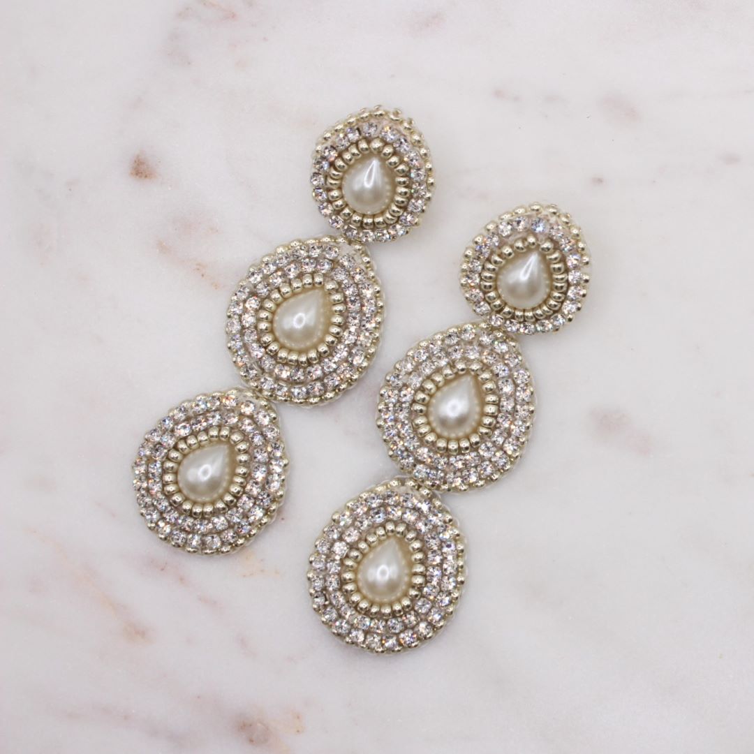 These earrings will elevate your look. They work wonderfully with any type of neckline. I love the effect they have with high necks and bold, solid colors.