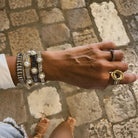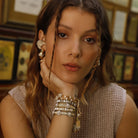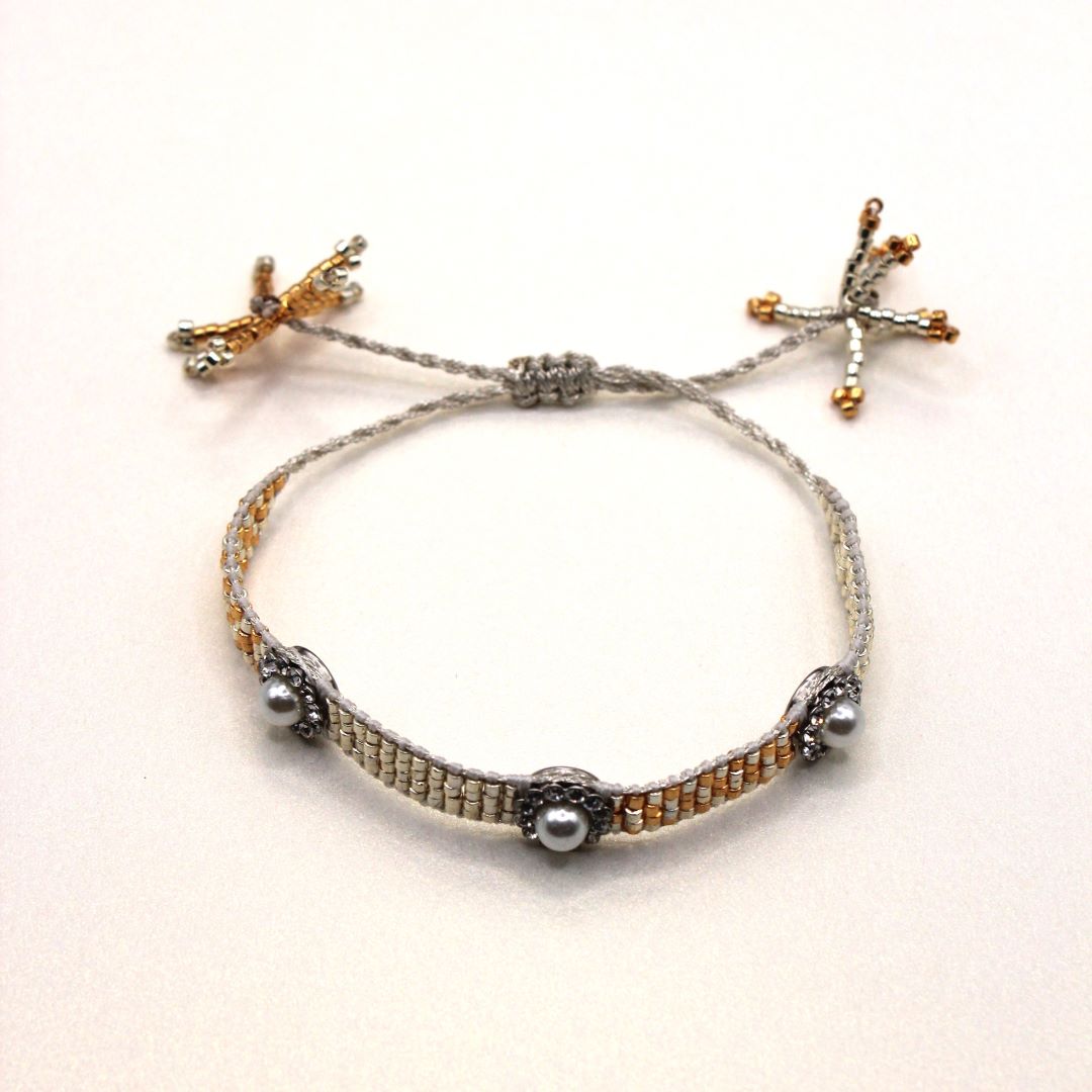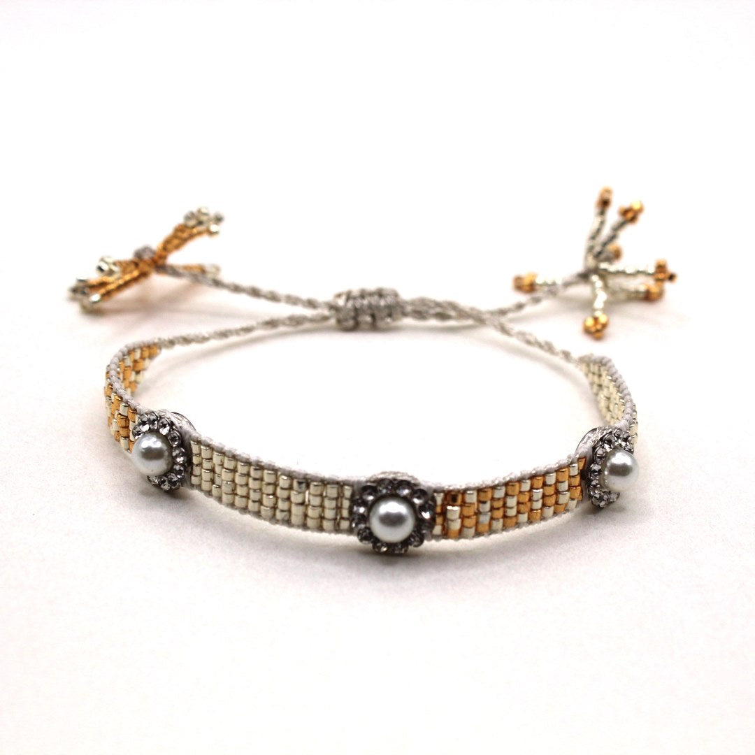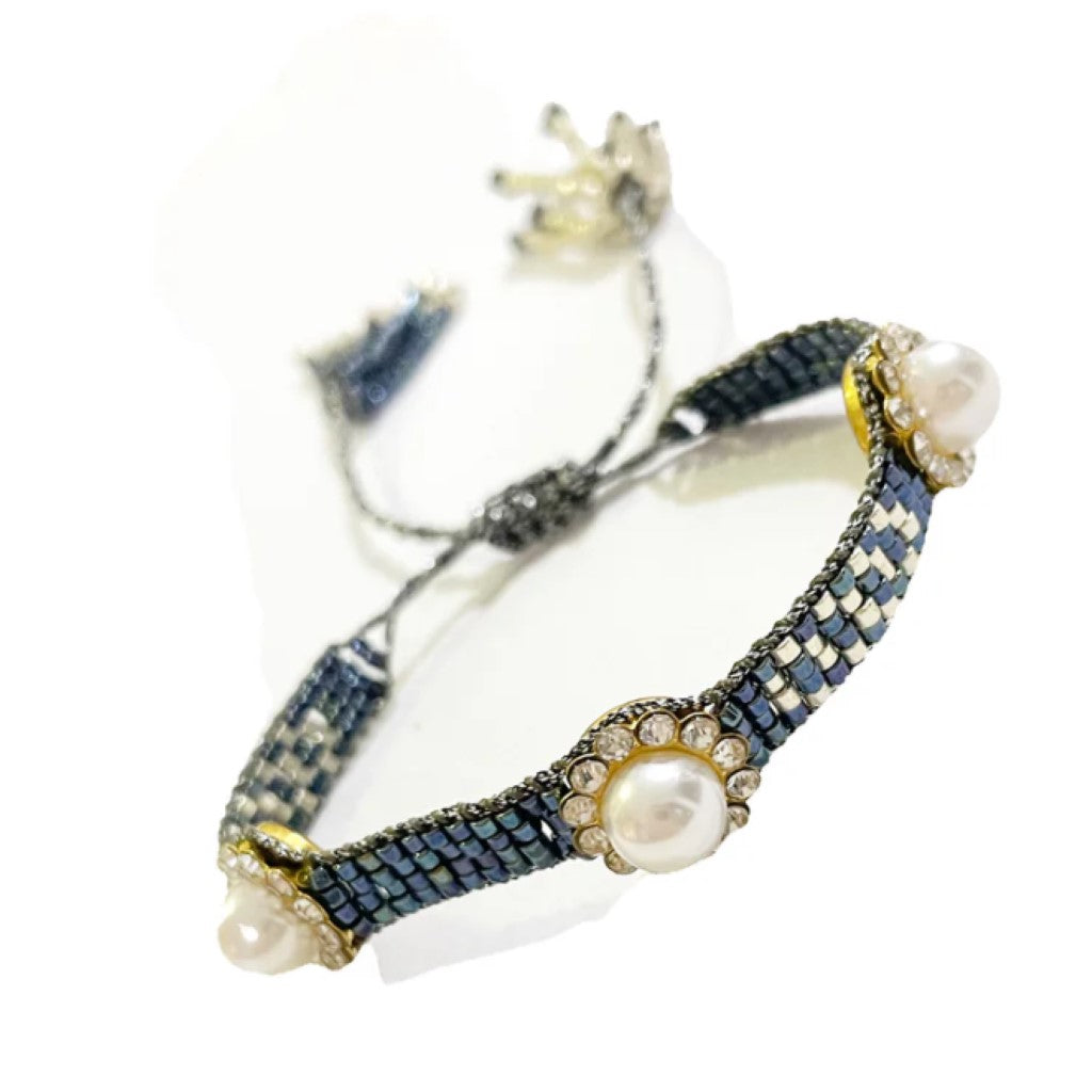 This adorable Miyuki beaded bracelet features flower pearl pieces in astonishing iridescent colors, adding an exquisite bohemian flair to the design.