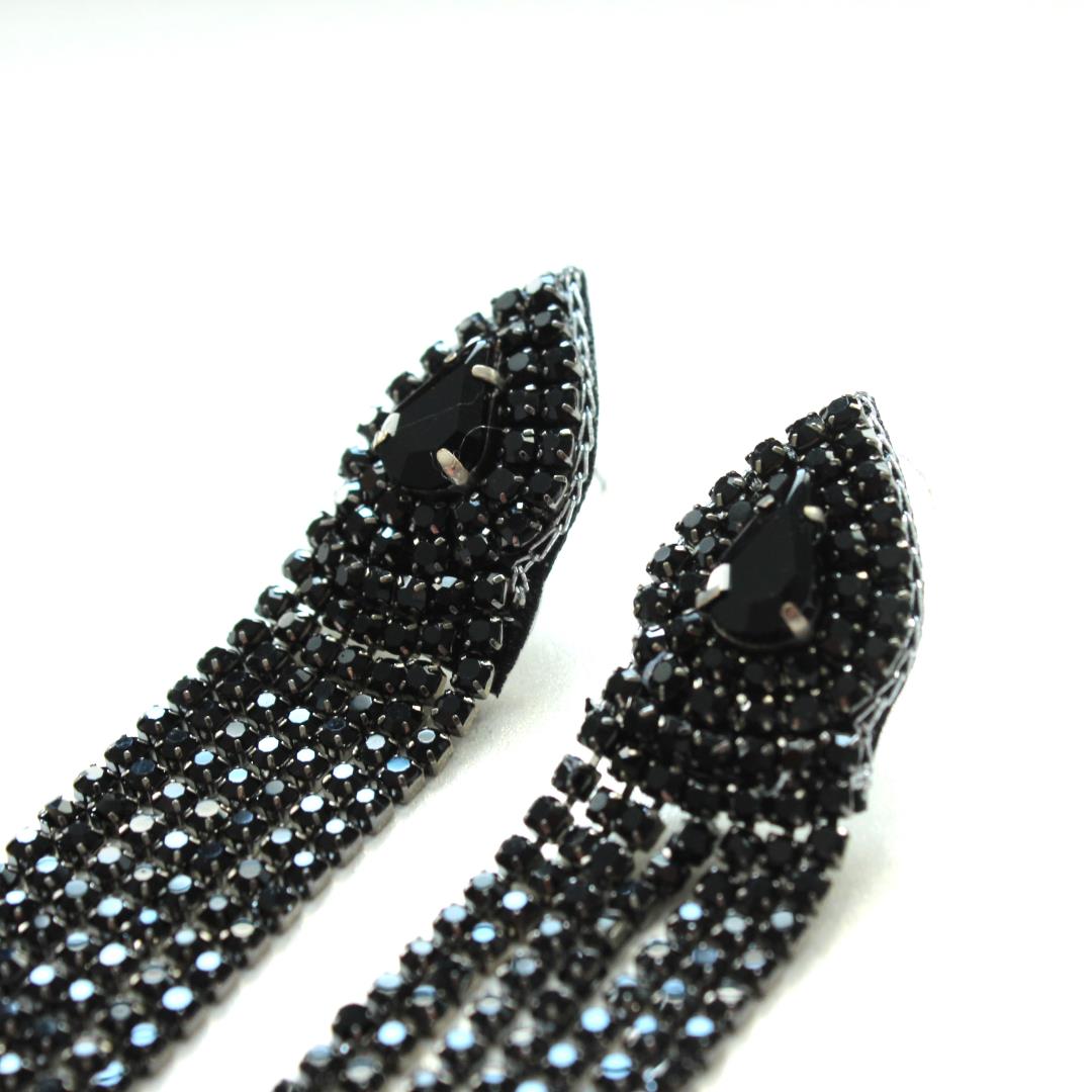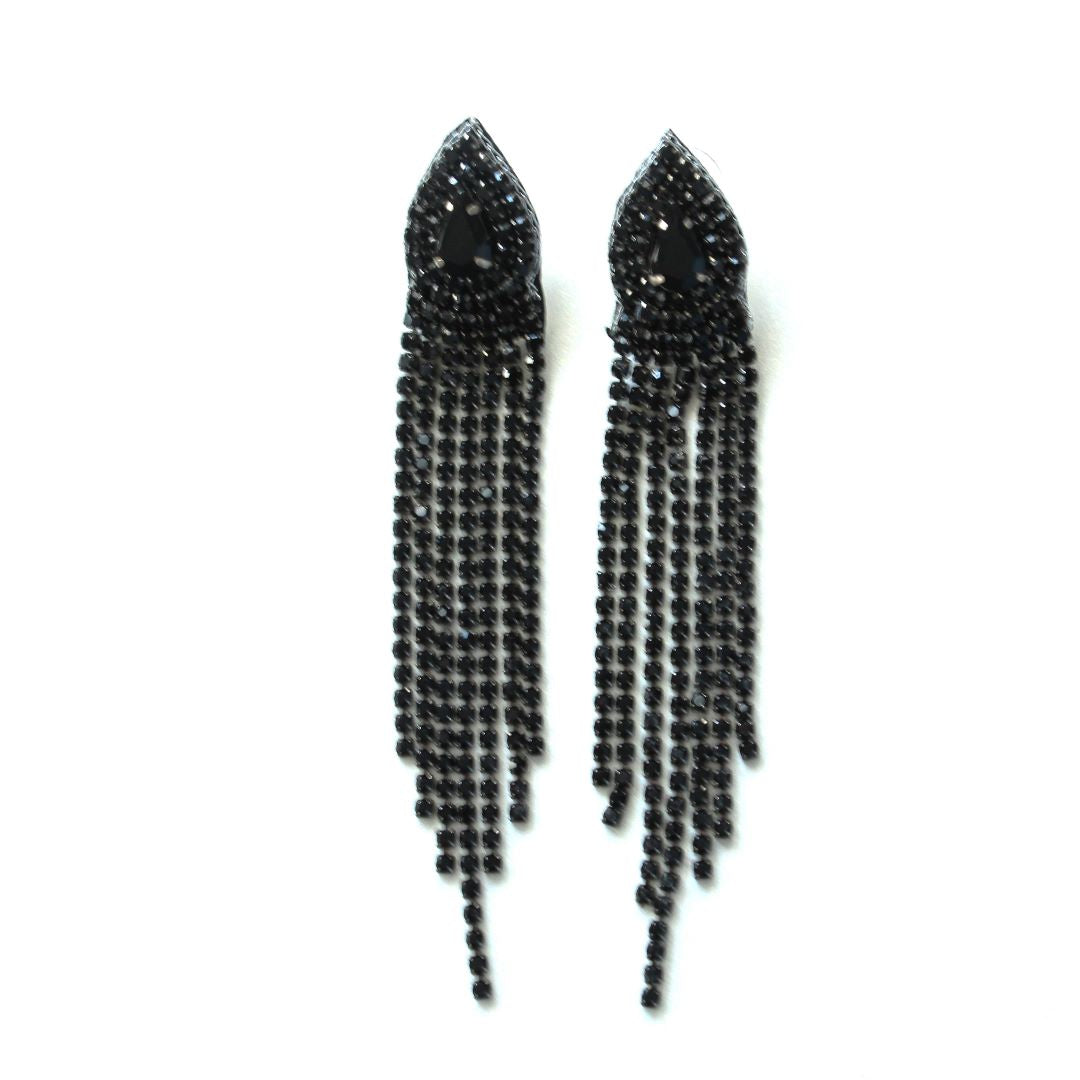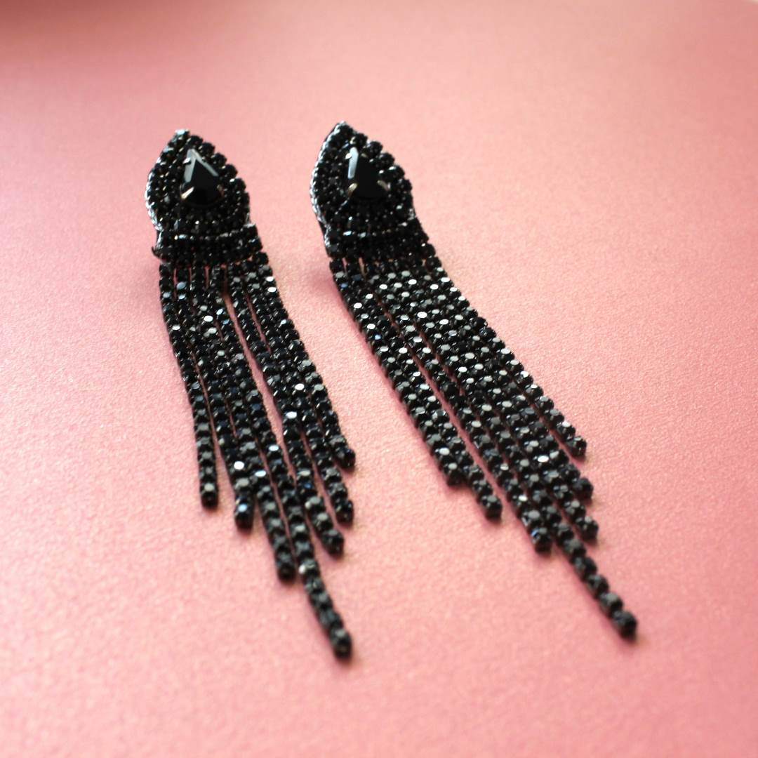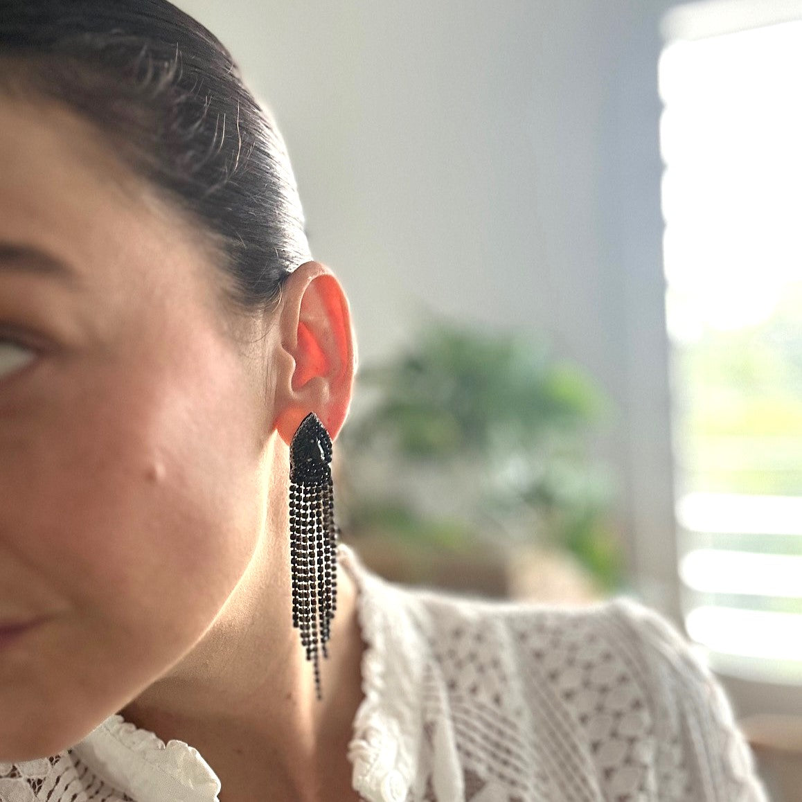 These deco-inspired earring feature tassel drops enlivened with crystals.